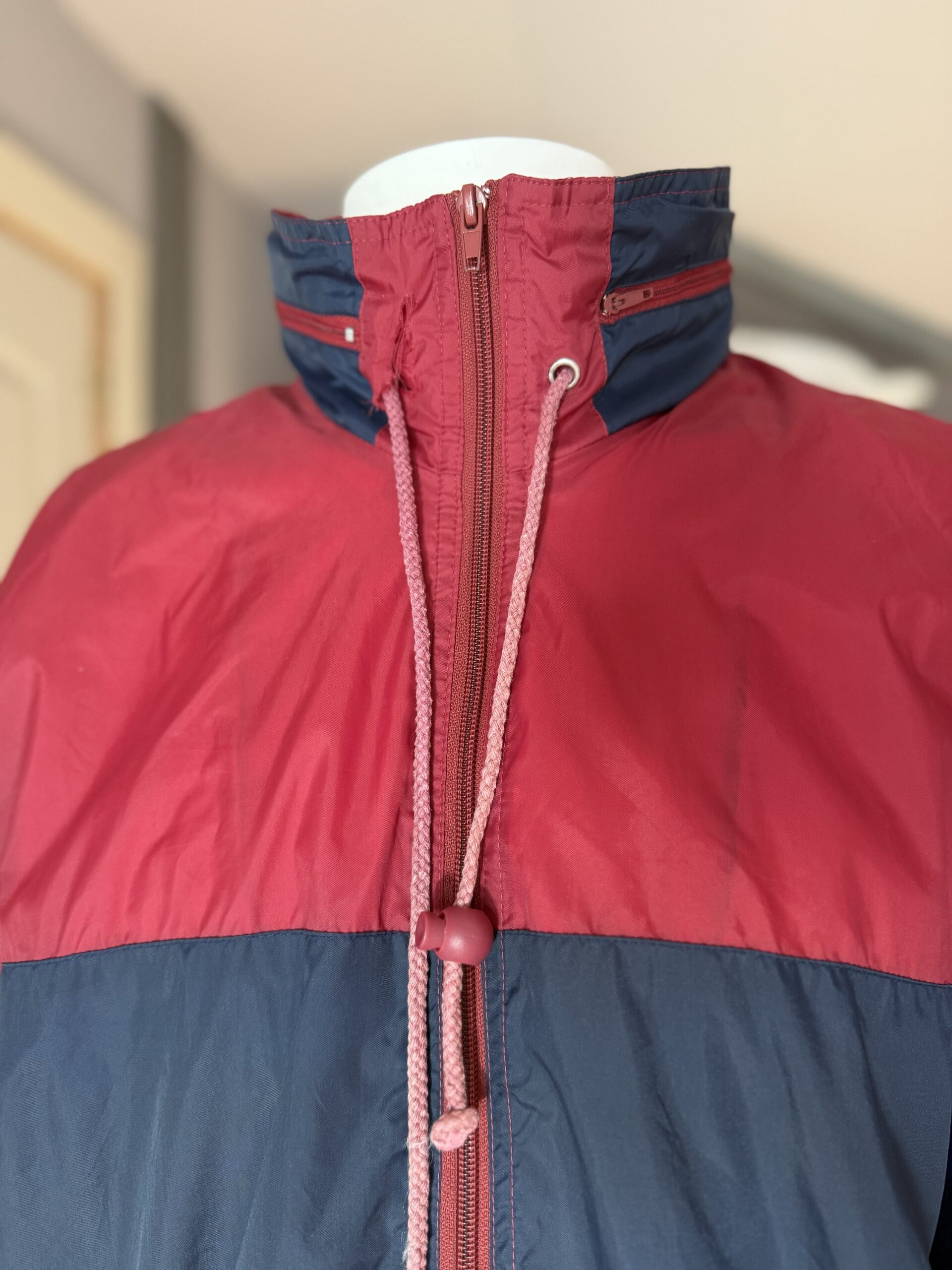 Cuenta con capucha integrada, cierre frontal de cremallera y bolsillos con cremallera. Una prenda ligera ideal para entretiempo y perfecta para looks streetwear vintage o estilo retro deportivo.