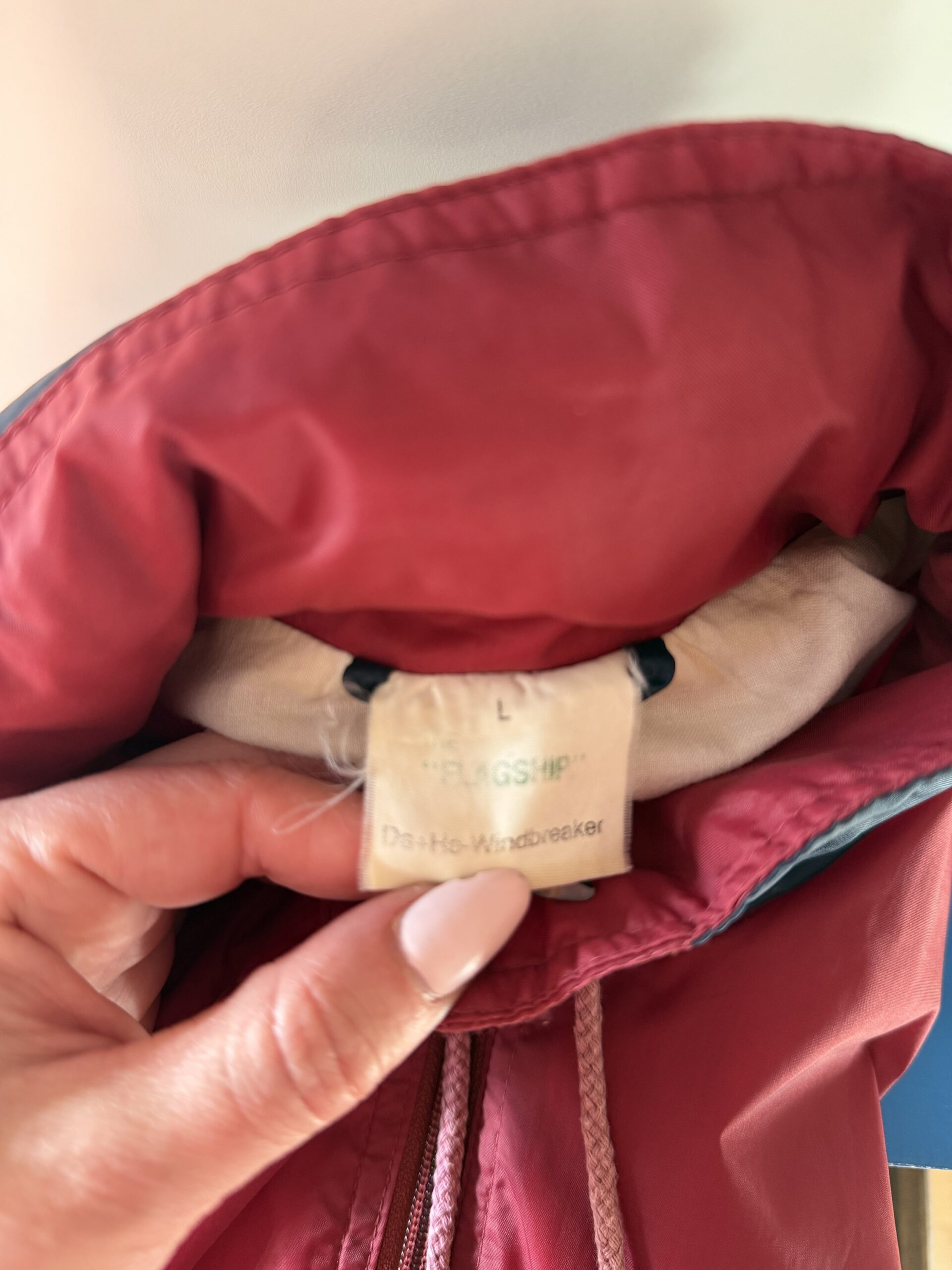 Detalle: presenta pequeño desgaste en uno de los orificios del cordón de ajuste de la capucha, algo común en prendas vintage, que no afecta a su uso.